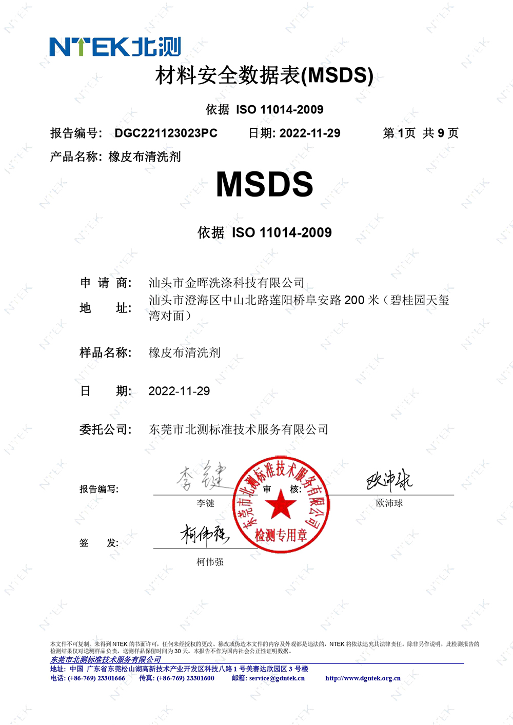 油墨清洗劑檢測報告